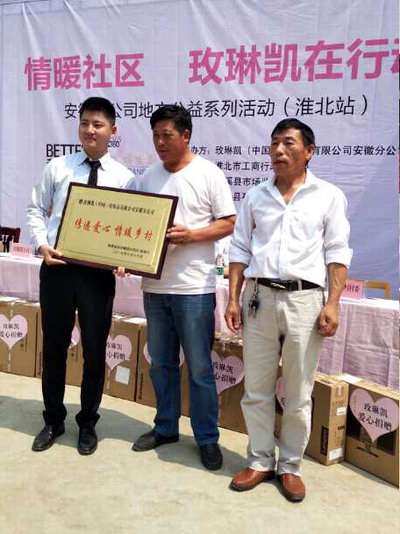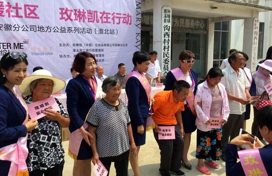 6月16日上午,主题为“情暖社区?玫琳凯在行动”爱心活动在淮北市濉溪县孙疃镇陈楼村及沟西村举行。活动当天,玫琳凯安徽分公司的员工和销售人员们捐助26000元,不仅为两个村捐赠8台电脑建立农村信息电教室,还和当地贫困户帮扶结对。此次活动由淮北市工商局发起,玫琳凯(中国)化妆品有限公司安徽分公司倾情参与。