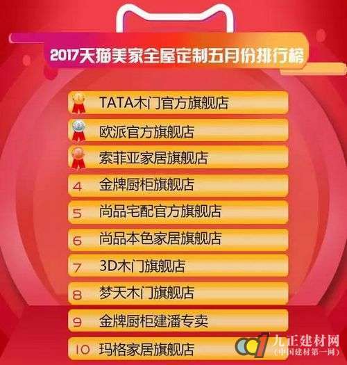 原标题:天猫美家5月橱柜等排行榜出炉 金牌欧派稳居冠亚军