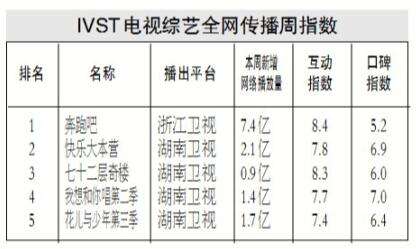 \u00A0\u00A0\u00A0\u00A0在本周综艺全网传播指数排行榜中,浙江卫视《奔跑吧》仍表现强势,位列榜首。湖南卫视《快乐大本营》20周年特别企划第五期节目中,唐艺昕、胡彦斌、韩东君等嘉宾在现场惊艳亮嗓,吸引大批观众。《我想和你唱》第三季新一期节目中,华晨宇、费玉清、李玟等演唱诸多经典歌曲,为观众带来极佳视听享受,口碑指数表现突出。