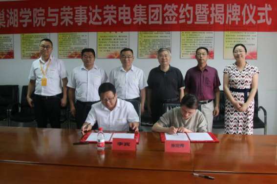 \u00A0\u00A0\u00A0\u00A06月8号下午,荣事达荣电集团与巢湖学院举行合作框架协议签约暨实习就业基地揭牌仪式,巢湖学院党委书记朱灿平、副校长朱定秀、科技处处长万新军、学生工作部部长刘金平等领导参加揭牌仪式,荣事达荣电集团副总裁夏俊生、合肥公司副总经理李宾、总裁助理刘守祥、马昌毅等领导带领荣事达荣电集团员工代表出席了揭牌仪式。