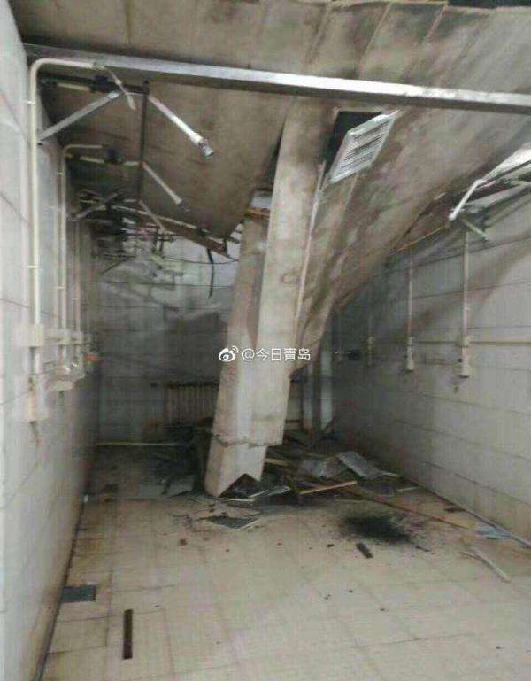 微博网友@今日青岛 发帖称,6月18日晚,青岛工学院女生浴室天棚坍塌,但无人员伤亡,事发后工作人员继续放女生进入洗澡。其所发布的现场图片显示,浴室顶棚大面积坍塌,洗澡所用的淋浴喷头被压弯,地面一片狼藉。