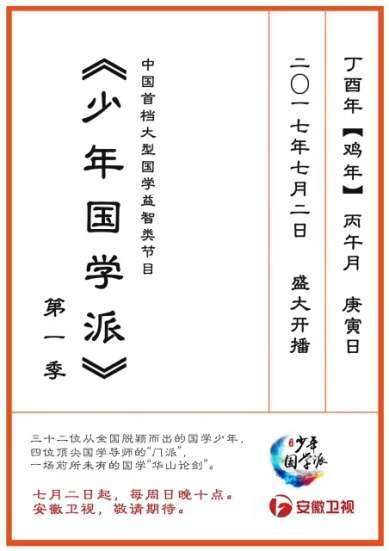 导读:7月2日,国内首档国学文化竞技类节目《少年国学派》,即将在安徽卫视上映。本节目由康震、蒙曼、杨雨等国学大师强势坐镇,知名教育家陈昊、著名心理专家柏燕谊同台钜献,以“专家萃取国学精华”为文化背景,以“导师选人亲自督战”为大赛形式,以“引导少年国学修为”为大赛目的,让中华少年“励德励志,有行有慧”。优胜教育作为《少年国学派》官方唯一承办方,注重学生素养提升、性格养成,从节目海选到决赛历时一年时间,走进千万家庭,现今终于与国内更多小朋友见面。