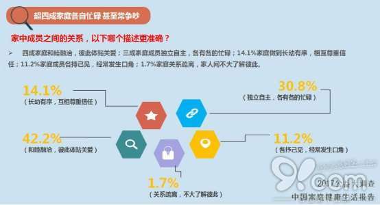 反之,各忙各的、聚少离多的家庭里只有18.1%拥有健康的家庭关系。