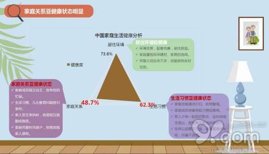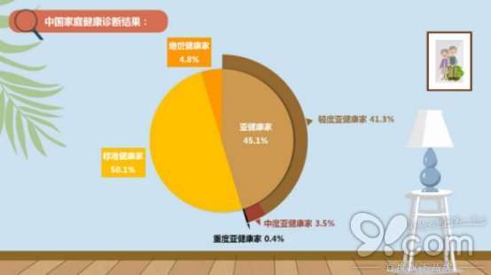 调查结果显示,亚健康家庭比例高达45.1%,而亚健康状态的家庭以轻度亚健康居多,占比41.3%。