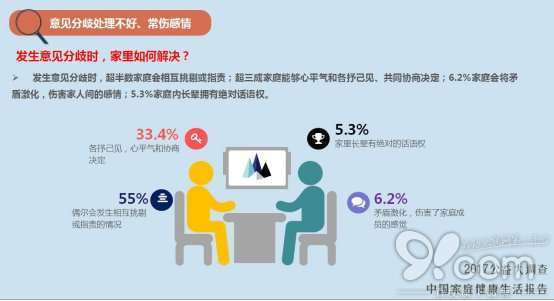 家庭意见分歧处理不好,容易互相伤害是家庭关系亚健康的第一症状。当发生意见分歧时,超半数家庭会出现相互挑剔或指责的情况;6.2%家庭甚至经常将矛盾激化,伤害家人间的感情;在5.3%的家庭中,长辈拥有绝对话语权,这无异于在家埋下了“定时炸弹”。