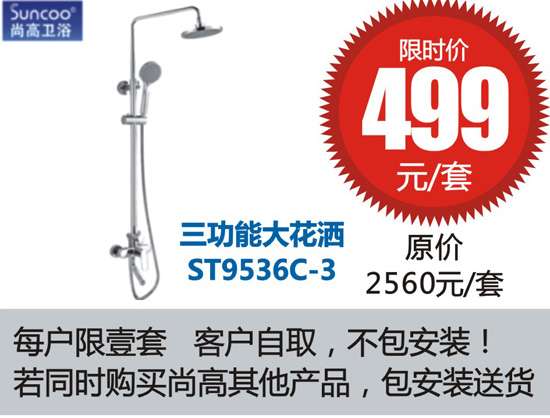 3.7房超网第四届家装狂欢节 尚高卫浴三出水花洒499元/套