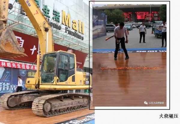 店内签售如火如荼,店外的广场上也没闲着。汽油泼在了地板上,火烧地板的大戏正在上演,这也吸引了不少吃瓜群众的围观。现场见证了大自然地板的火烧碾压实验,20吨挖掘机地板碾压,地板毫发无损的过硬质量引起消费者阵阵惊呼。工作人说:“这种品质的检测试验在建材市场非常少见,但可以最震撼最直观的让消费者感受到产品质量。”
