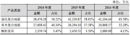 菲林格尔主营业务为从事木地板(主要为强化复合地板、实木复合地板)、橱柜家具的研发、设计、生产及销售。报告期内,公司各期木地板销售收入占主营业务收入的比例均在95%以上。
