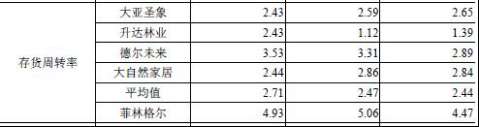 2012年至2016年,菲林格尔存货账面余额分别为10,417.58万元、10,979.33万元、11,529.56万元、9,811.40万元、10,688.55万元。 由于木地板产品属于大众消费品,存在产品更新换代快、消费热点转换快、市场竞争激烈等行业特征,因此公司木地板产成品及对应的原材料备货如出现库存规模管控不当,则可能会面临无法适应市场新的消费需求而出现销售不畅甚至产品销售亏损。 报告期各期末,公司累计计提的跌价准备余额分别为963.78万元、831.86万元、951.80万元、902.37万元和258.65万元。若在以后的经营年度中因市场环境发生变化、竞争加剧导致存货跌价或存货变现困难,公司的盈利能力将可能受到不利影响。 存货周转率分别为4.86、4.73、4.47、5.06、4.93,同行业上市公司存货周转率平均值分别为2.71、2.52、2.44、2.47、2.71。