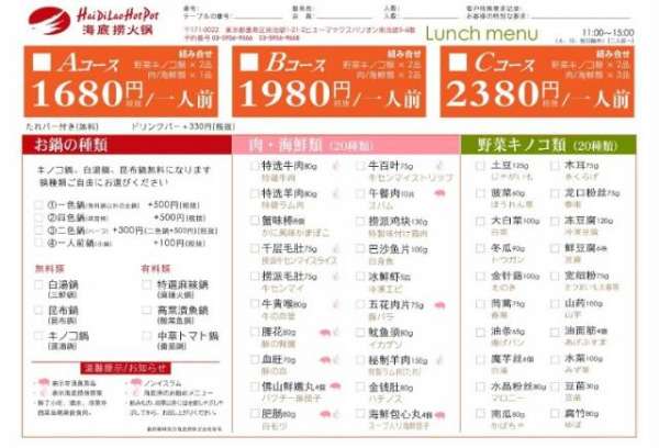 菜单看上去上大致内容跟国内没有差很多,只是加了日本人最喜欢的午市套餐!增加了许多日本特色的菜品如冷奴豆腐、日式炸鸡等。