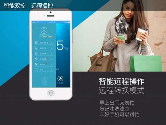 水槽台面智能芯控,与水槽台面融为了一体,用户使用一目了然,产品同时搭载移动互联智能芯控,通过WIFI链接手机APP,通过APP监控管理系统,可轻松实现滤芯寿命监控;水质监控;网络商城滤芯购买;滤芯冲洗,远程故障报警等功能;一键操控,简单快捷。