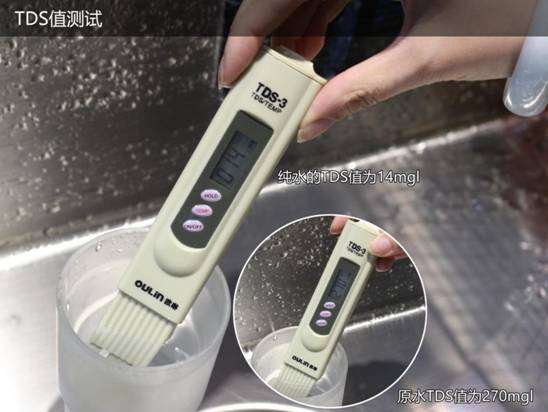 测试结果显示,原水(自来水)的TDS值为270mgl,而欧琳纯水的TDS值为14mgl,可见产品的净水过滤测试结果还是非常令人满意的。
