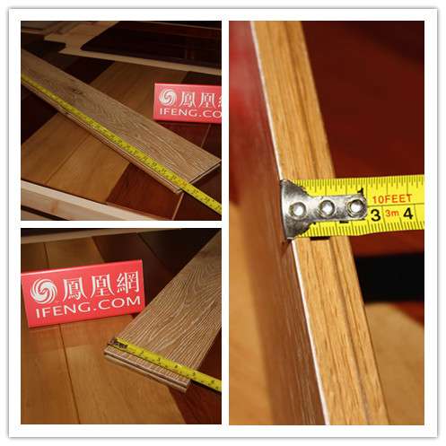 产品尺寸:地板的尺寸影响着铺装的整体效果、铺装过程中材料的损耗量以及后期的使用等问题,小编在现场对该款地板的长、款、宽进行了测量。结果如图所示,与安信橡木实木地板标注的尺寸:909*125*18mm数据一致。尺寸标准、无偏差。