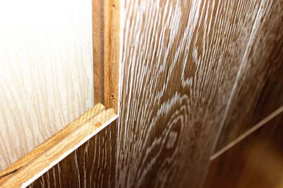 产品细节。安信橡木实木地板在细节的处理上十分讲究,榫卯槽光滑无毛刺,这也可以看出安信对于地板材质的选择和工艺打造等方面的要求都十分苛刻。