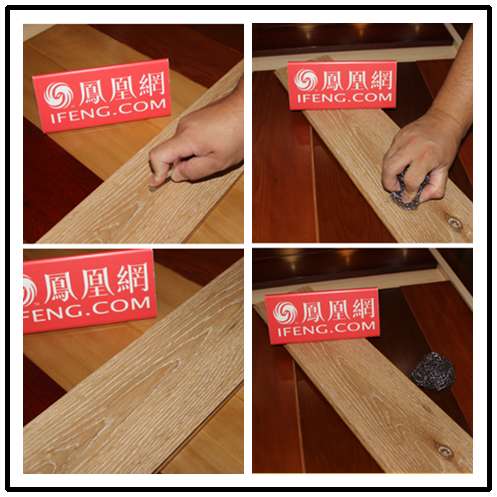 耐磨测试。地板的高踩踏频率要求其应具有很好的耐磨性,在对安信橡木实木地板进行耐磨性测试时,测评人员用钥匙尖端和钢丝球在地板表面来回用力刮磨后,发现地板表面毫无刮痕。由此可见,这款地板具有良好的耐磨性能,经得起品质的检验。