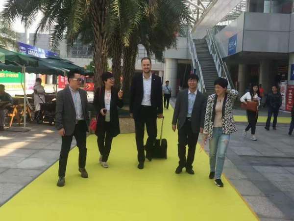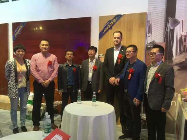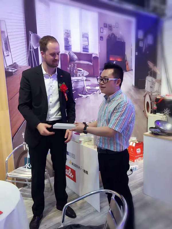 德国柯诺KRONO|莱茵阳光地板总裁PHILIP(中)风尘仆仆赶到家博会现场