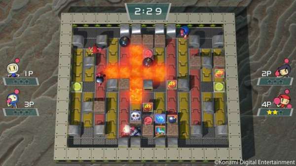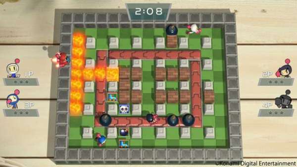 ??可以使用的角色方面增加了蝮蛇炸弹人、西蒙炸弹人、三角头炸弹人这三个分别来自KONAMI旗下知名的宇宙巡航机、恶魔城以及寂静岭系列的角色。对战场景方面新增经典传送带、恐慌工厂、普通地板、沙漠要塞四个场景。