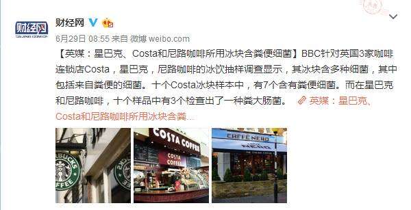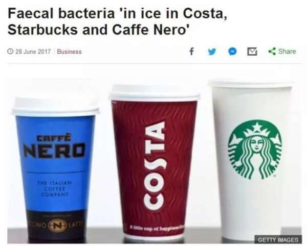 英国常见的三家咖啡连锁店星巴克、Costa和Nero(尼路)的冰饮中都被检测出粪大肠菌群!