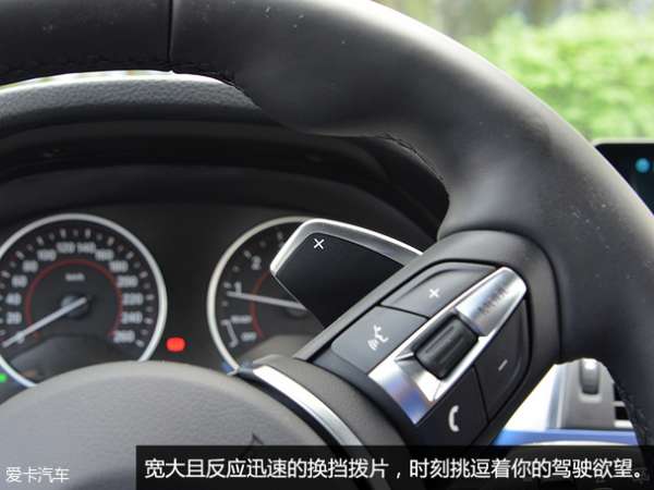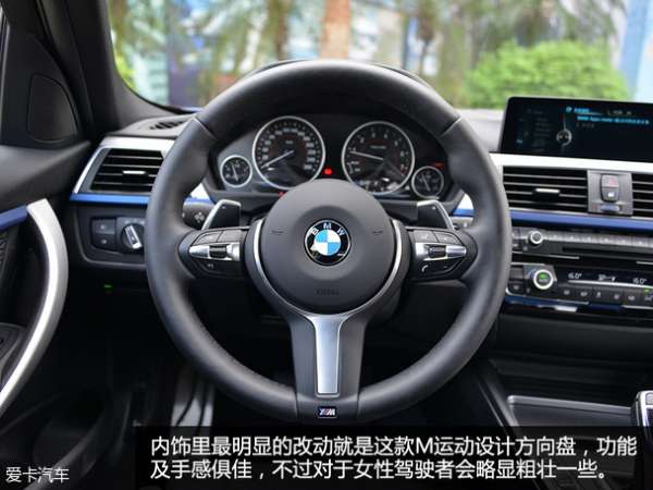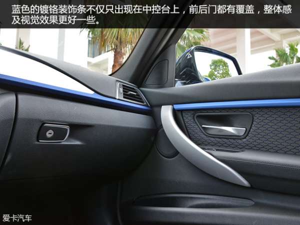 内饰在设计与配色上也与外观相呼应,采用了铝制饰板加上埃斯托蓝的装饰条点缀,此外还带M专属标识的迎宾踏板及左脚踏板,蓝色的装饰条不仅位于中控台,连4扇车门都有覆盖,视觉效果更好,同时新增了多出镀铬装饰。而最为显眼的莫过于M专属的运动感十足的方向盘了。手感及功能都十分的不错。只不过女性驾驶者会觉得略有些粗壮,不易操作。