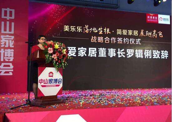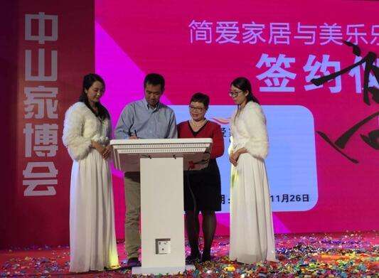 正逢中山家博会,主题为“美乐乐‘落地生根’简爱家居‘展翅高飞’”的战略合作协议签约仪式在中山博览中心综合厅举行。在双方高管及嘉宾的见证下,美乐乐CEO高扬先生与简爱家居董事长罗辑俐女士签署了战略合作协议。广东省家具协会及中山市工商联等领导嘉宾莅临现场,并发表了重要讲话。现场数百名嘉宾共同见证了协议的签署。