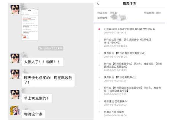 从美铺客服部门了解到,“玩美节”期间用户对购买体验的反馈很好,尤其对物流速度赞誉有加。有几位用户专程截图评价称:“晚上7点下单,9点半在订单详情中看到“已发货”,次日早晨下楼时发现保安已签收……这速度也是没谁了!”