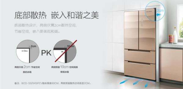 在美的532冰箱的“纤体”背后,是美的对冰箱所用材质的创新——通过应用新技术,美的成功减少了箱体发泡层材料的厚度,从而成功将冰箱的箱体厚度大为缩减。同时,在散热方面采用底部散热而非两侧散热。与竞品冰箱相比,这种创新是不以牺牲有效容积为前提的,因此美的532冰箱外观比竞品冰箱更为“苗条”,但却“有容乃大”,可以放得下同类大容量冰箱所能容纳的食材,可谓“颜值”更高,“内涵”不减。