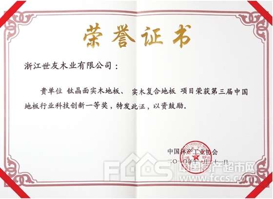 钛晶面获科技创新一等奖 E0企标省级备案 中国环保地板十 强品牌