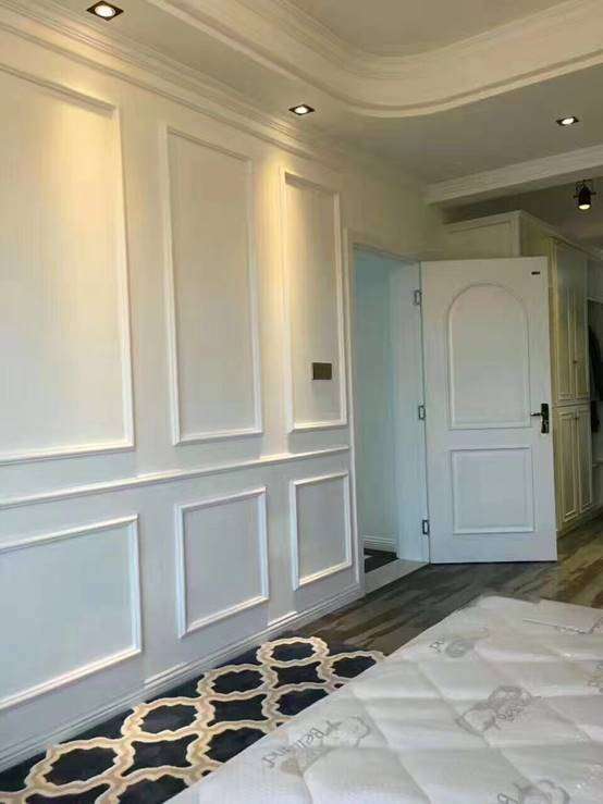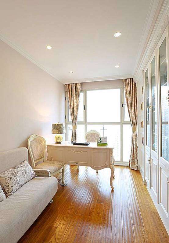 本设计方案是一对小青年居住,整体色调搭配比较温馨舒适。客厅的水晶琉璃灯打造欧式浪漫情怀,背景采用简约的线条勾勒,突出墙布的质感。吊顶极简的纹理,浪漫的色调,高低有致,立体感十足,仿佛迈向幸福的阶梯。客厅与阳台交汇处窗帘的点缀使得空间多了一份又见一帘幽梦意境。书房卧室采用纯白的木质家具,纹理精细美观,显露出一番别样的古典韵味。