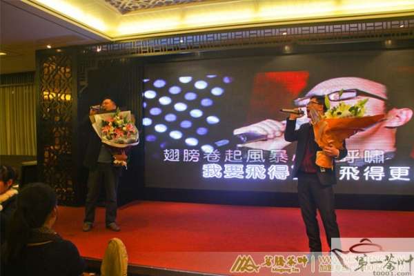 蛇舞山川新岁来,红梅翠柏入襟怀。2013年2月27日晚,茗腾茶叶“茗腾20周年 茗静致远――茗腾茶叶2013迎新晚会”在骏豪会隆重举行。茗腾茶叶一百多位员工,齐聚一堂,欢声笑语,共度新春良辰。回首2012,展望2013,茗腾茶叶所有同仁携手共创更美好的明天。