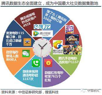 独特的数据来源+世界级的数据分析能力。无所不在的移动支付是金融大数据的起点,背靠两大社交和移动支付平台的腾讯征信正在整合实名数据、支付数据、安全数据和腾讯独有的社交数据。基于其生态圈,腾讯建立建成了十亿用户量级、单个用户上万维度特征的用户画像体系。随着移动支付的进一步渗透,腾讯金融将为长期处于征信空白的长尾用户建立征信记录,在增量市场中占据较大份额。