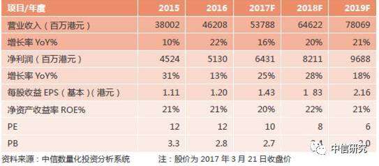 考虑到港澳和大陆市场订单增长的可持续性,以及公司订单开工率逐步提升,我们预测2017/18/19年公司净利润为64.3/82.1/96.9亿港元(维持17/18年预测,新增19年预测),对应2017/18/19年EPS分别为1.43/1.83/2.16港元,预计未来三年营业利润CAGR21.6%。维持17.2港元目标价,维持“买入”评级。