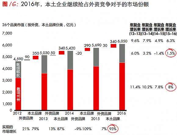 凯度消费者指数、贝恩公司:中国本土快消品牌正在蚕食外资品牌份额