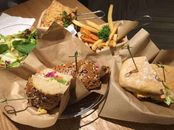 知道大家最关心的一点是味道,毕竟图上看起来这么诱人,连原味鸡都被精致地装到了牛皮纸铺的小篮子里。但不幸的是,在小龙虾鸡肉帕尼尼里,我并没有找到小龙虾。