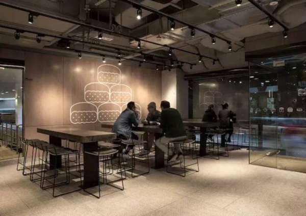 整个店铺采用性冷淡的工业风,以灰色为主调,配合橡木、镀锌、混凝土等现代感的素材。除了标志性的黄色大M字,你找不出任何这里是麦当劳的证据。