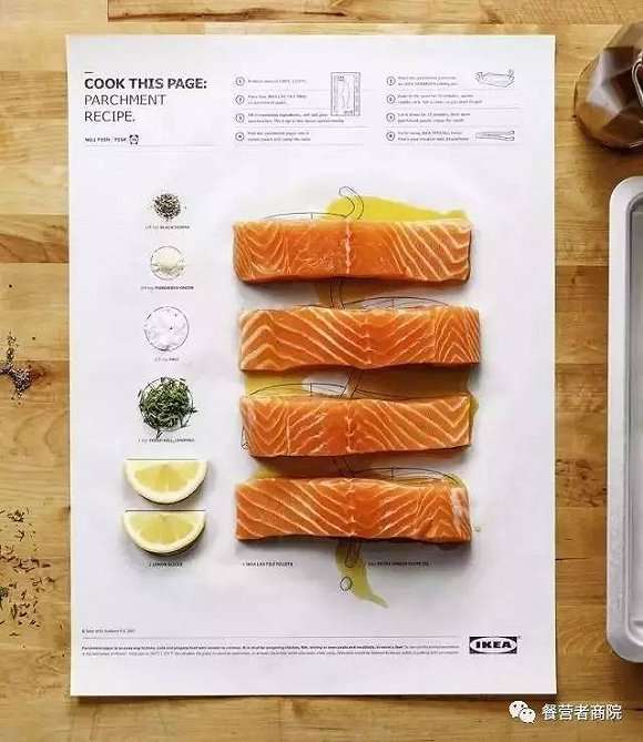 餐营者们,发现宜家的城府和心机了吗?这张超Fun的食谱【绝对、不仅仅】是用来解救下厨无能星人的!从食谱作用的食材,到处理食材的小工具,装盘用的碗盘、用餐的餐具水杯,再到厨房清洁、收纳的各类小配件,直至整个厨房空间的规划设计、家具的打造、园艺的延伸,宜家全部都有~以一张食谱带动厨房全线产品以及延伸产品的销售,就问你:服不服?