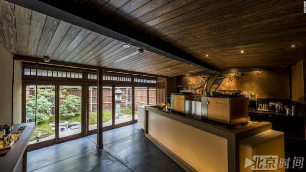 顾客可以坐在传统的榻榻米和布团上、观赏庭院中的日式盆栽喝着星巴克,也是相当混搭