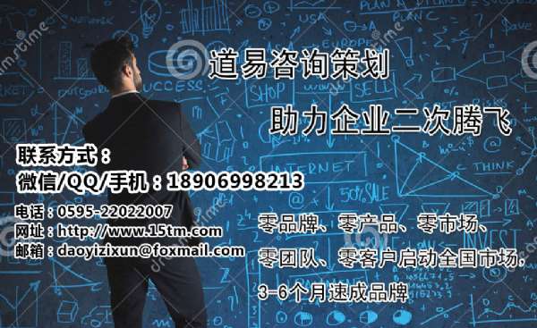 如需更多品牌营销策划服务,更可以联系【道易】,让您如虎添翼,3-6个月速成商业模式、速成产品体系、速成价盘体系、速成品牌、速成团队、速成市场、速成客户……