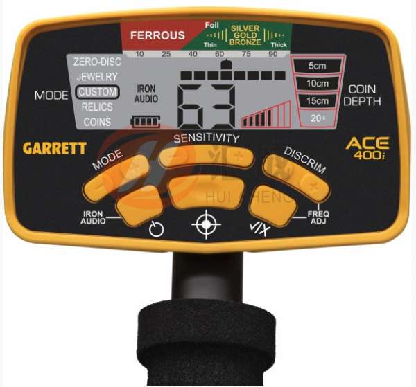 盖瑞特ACE400i包括Garrett的独家探测技术和专利的歧视特性。该技术有两个指标尺度,让你看到探测器的歧视设定(下表) ,以及每个检测到的目标(上表)的分析。 ACE 400i还具有增强的铁分辨率(从垃圾铁在杂乱的区域分离理想的目标额外的分辨率)。