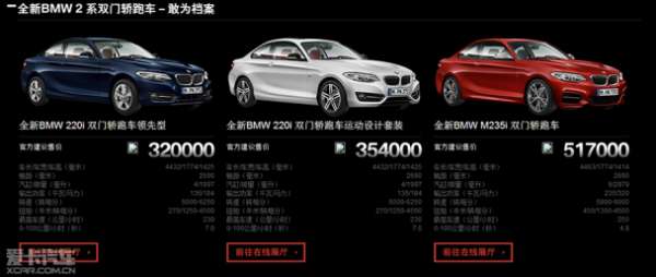 [ 宝马2系 宝马2系 了解更多> 指导价:27.60-49.80万 变速箱:手自一体 发动机:1.5T,2.0T,3.0T 级 别:跑车 ]M235i最新报价及图片消息,新车怎么样。根据最新消息,这款车型已经正式上市销售了,该车替代原来的宝马1系Coupe,并且外观上更加突出运动风格、车内空间更宽裕,发动机和底盘也为运动性能重新调校。3款车型供大家选择,售价区间32-51.7万元。下面就一起来了解一下宝马2系双门轿跑车型的最新消息吧。