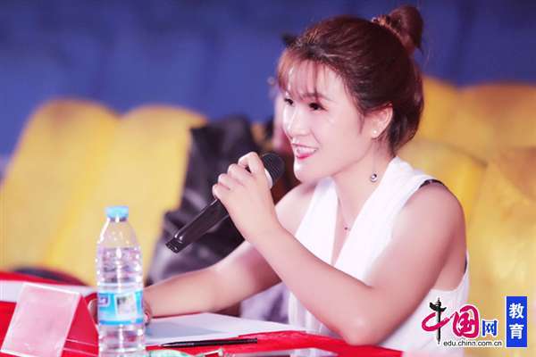 图为:大赛秘书长兼首席评委徐腾腾对选手节目进行点评