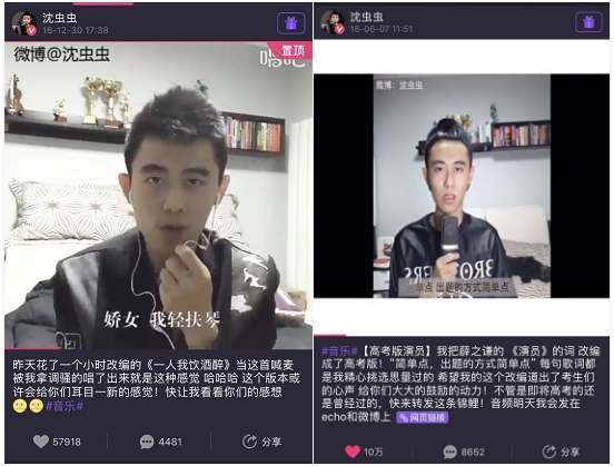 作为资深美拍达人,沈虫虫热衷于将自己的最新音乐作品,与美拍用户分享。