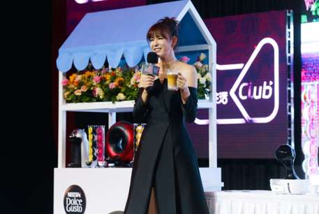 活动发起人、主持人李艾在主舞台体验使用多趣酷思DROP胶囊咖啡机制作咖啡