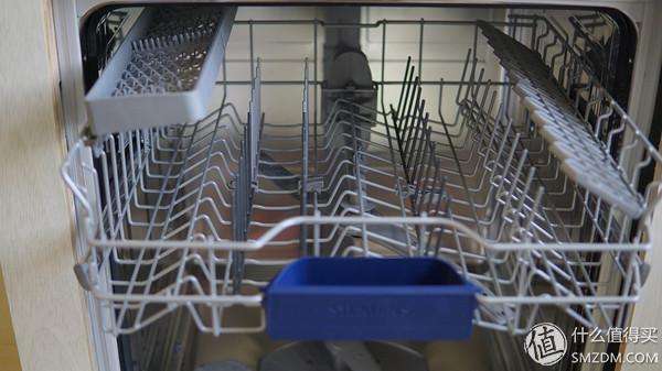 西门子洗碗机SN45M531TI就长这样,注意,控制面板上的“污点”不是铁锈,洗碗机内部也有这样的“污点”,这是洗碗机出厂前试用留下的,擦一下就没了,。下面蓝色的部分是一层保护贴膜,用过西门子家电的都不会陌生,不喜欢撕掉就好。下面有一点空旷?这样的细节西门子不会忽略掉的。