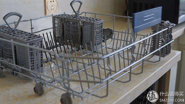 下层可以拿下来,可以看到下层有两个刀叉筷子篮,这点挺好的,如果用洗碗机洗了碗碟,筷子还要手洗就很尴尬了。