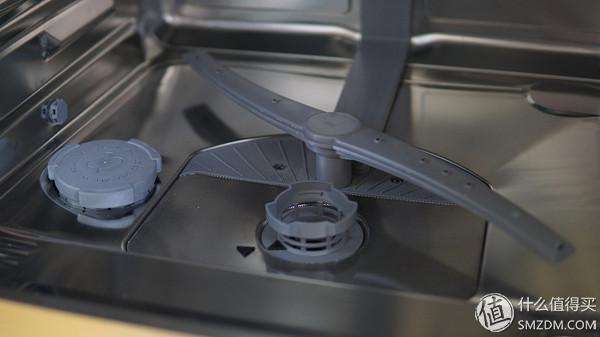 取出后内部就是这样,左边有盖子的地方是放洗碗盐的,中间螺旋桨一样的是喷淋臂,下方的是过滤器,