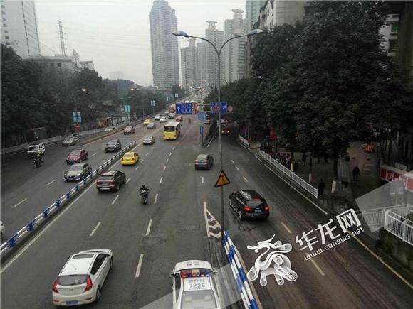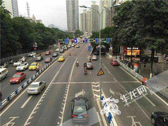 多车道汇入信号控制技术实施前的情况。沙坪坝区交巡警供图 华龙网发