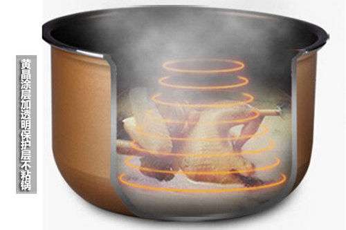 美的W13PCS503E电压力锅采用金黄色的外观设计,更显精致和时尚 不锈钢外壳材质坚韧、耐磨,使用寿命更长久。整个压力锅设计小巧,不用担心占用很大空间。功能按键设计简约,操作方便。