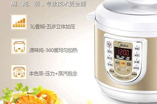 电压力锅已经是非常熟悉的家用厨房电器,电压力锅是传统的高压锅和电饭锅的升级产品,它集两种产品优点于一身,烹饪效率更高,使用更安全。随着技术的革新,电压力锅的功能越来越完善,可以焖、蒸、炖全能烹饪,使用很方便。美的W13PCS503E电压力锅具备九大烹饪功能,满足全家人的烹饪需求,同时采用十重安全防护,使用更安心,做出的饭菜更营养。现售价为288元,京东商城和国美电器均有销售。