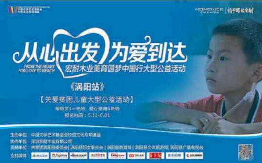 由中国文学艺术基金会发起,中国文学艺术基金会校园文化专项基金主办,宏耐地板独家赞助支持,并以全国选拔形式在行业内引起轰动效应的宏耐美育圆梦大型公益活动,5月起已在全国范围内火热展开。