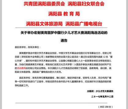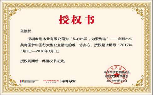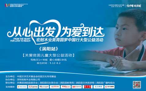 自2017年5月起,由中国文学艺术基金会发起、校园文化专项基金主办、深圳宏耐木业有限公司独家协办的“美育圆梦大型关爱贫困青少年儿童公益活动”于全国盛大开幕。耐地板美育圆梦“爱心天使”选拔赛第一站涡阳站报名已开启。